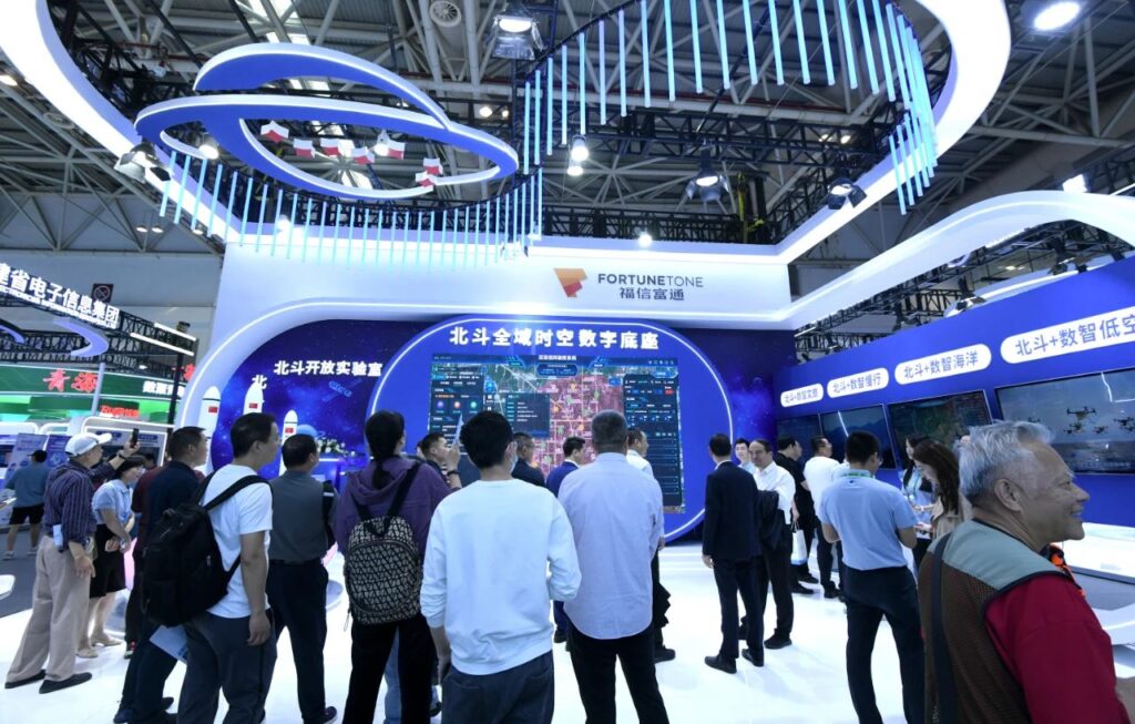 在第八届数字中国建设峰会现场体验区,福信富通展出了北斗在数据要素、数字海洋、数字低空、数字文旅、慢行交通等领域的规模化应用成果及多领域创新实践。