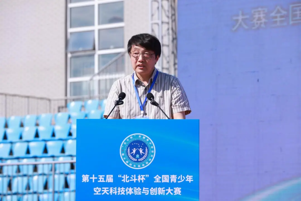 蔡兰波在致辞中提到,自2023年11月,第十五届“北斗杯”大赛全面开始筹备,共设置体验类、创意类、创新类三大类,赛项数量由去年的6项增加到今年的11项。这一变化不仅丰富了比赛内容,也极大地激发了青少年的参与热情。他强调,参赛选手们代表着北斗时空体系和它所支撑的空天世界的未来,“北斗杯”大赛体现出国家空天科技的生生不息与后继有人。在接下来的比赛中,希望每一位选手尽情发挥自己的想象力和创造力,带着对空天科技的热爱、对创新的热情,让凝聚着你们智慧和汗水而精心设计的作品,深入思考的方案,在比赛中充分绽放自己的才华、水平和自信。