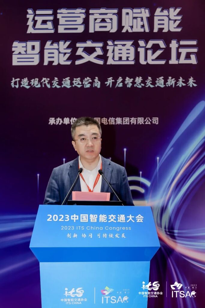 中国电信政企信息服务事业群交通物流BG总裁沈尔健在运营商赋能智能交通论坛上致辞